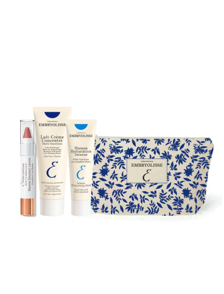 Набор в косметичке состоит из 3-х топовых продуктов бренда Embryolisse и 5 шт миниатюр.